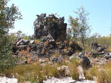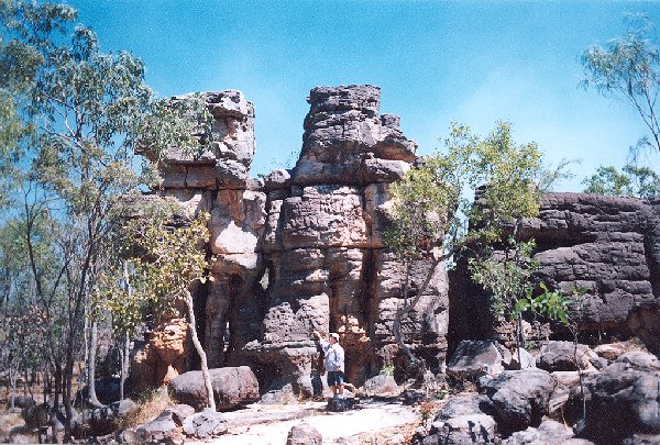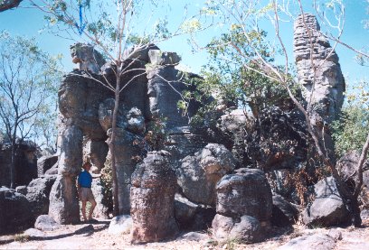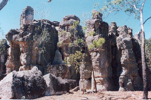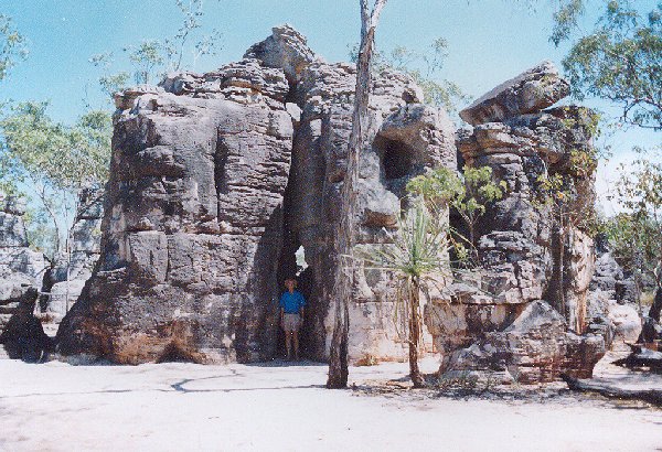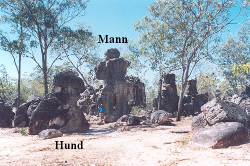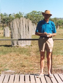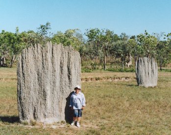 | Auf dem Weg zum Litchfield Nationalpark kamen wir an diesen magnetischen Termitenhuegeln vorbei.Diese sind immer Nord-Sued ausgerichtet damit die heisse Mittagssonnen nur auf die kleinstmoeglichste Flaeche brennen kann. | |