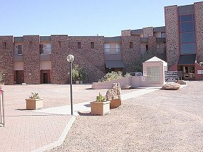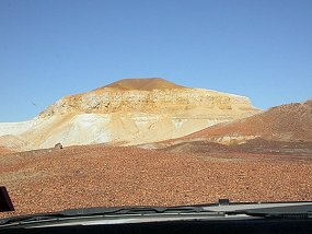 | Das ist Coober Pedy, die Opalhauptstadt der Welt. Die Einwohner bauen ihre Haeuser unterirdisch, wegen der grossen Sommerhitze, nur das Vorhaus ist draussen. Selbt die Geschaefte sind untergrund. Fuer den Uebersee- Tourismus erbaute man ein sehr schoenes Hotel, zum grossen Teil auch unterirdisch. |